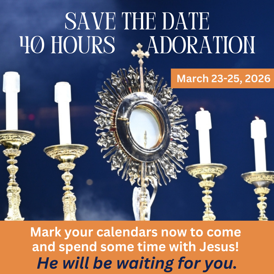 This beautiful devotion involves continuous prayer and adoration before the Blessed Sacrament for 40 hours, recalling the time Christ spent in the tomb. It is an opportunity to deepen our relationship with Jesus, offer Him our petitions, and pray for our parish and the world. Let’s prepare our hearts for this time of grace!