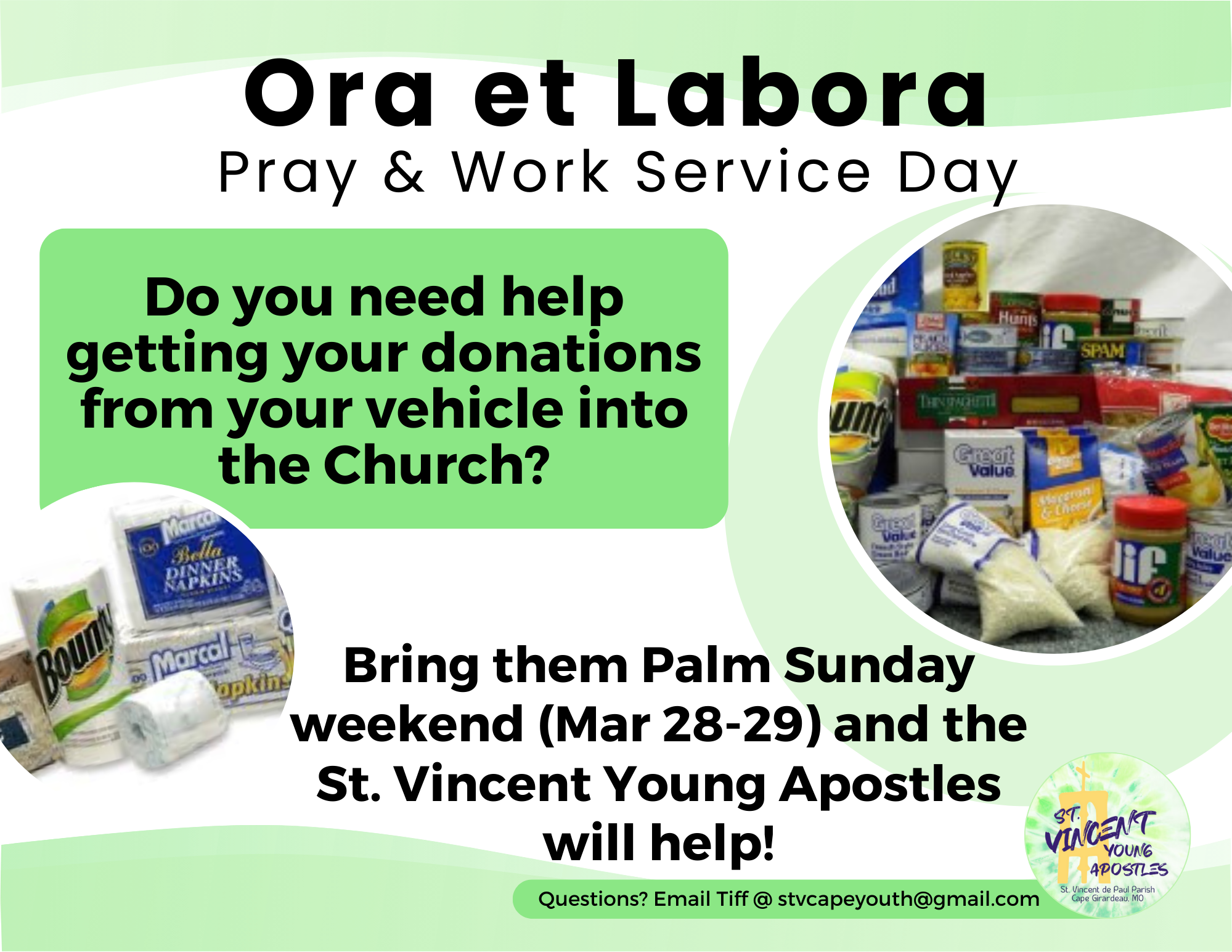 Please bring your donations with you to Palm Sunday Mass (March 28-29).
