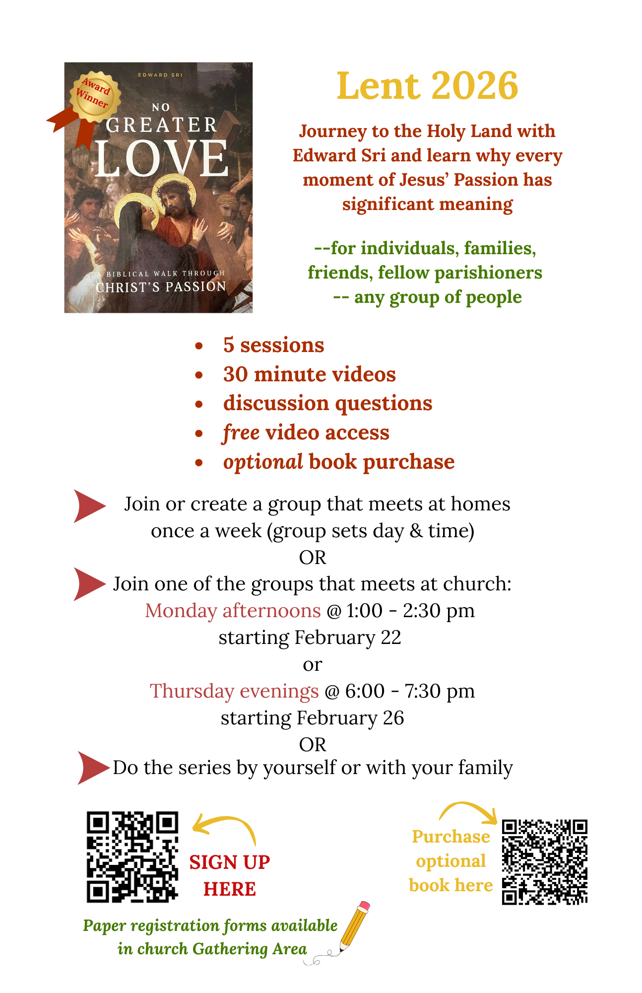 Daily Lenten Reflections written by St. Vincent Parishioners. These books can be found in the gathering space and by the enterances to Church.