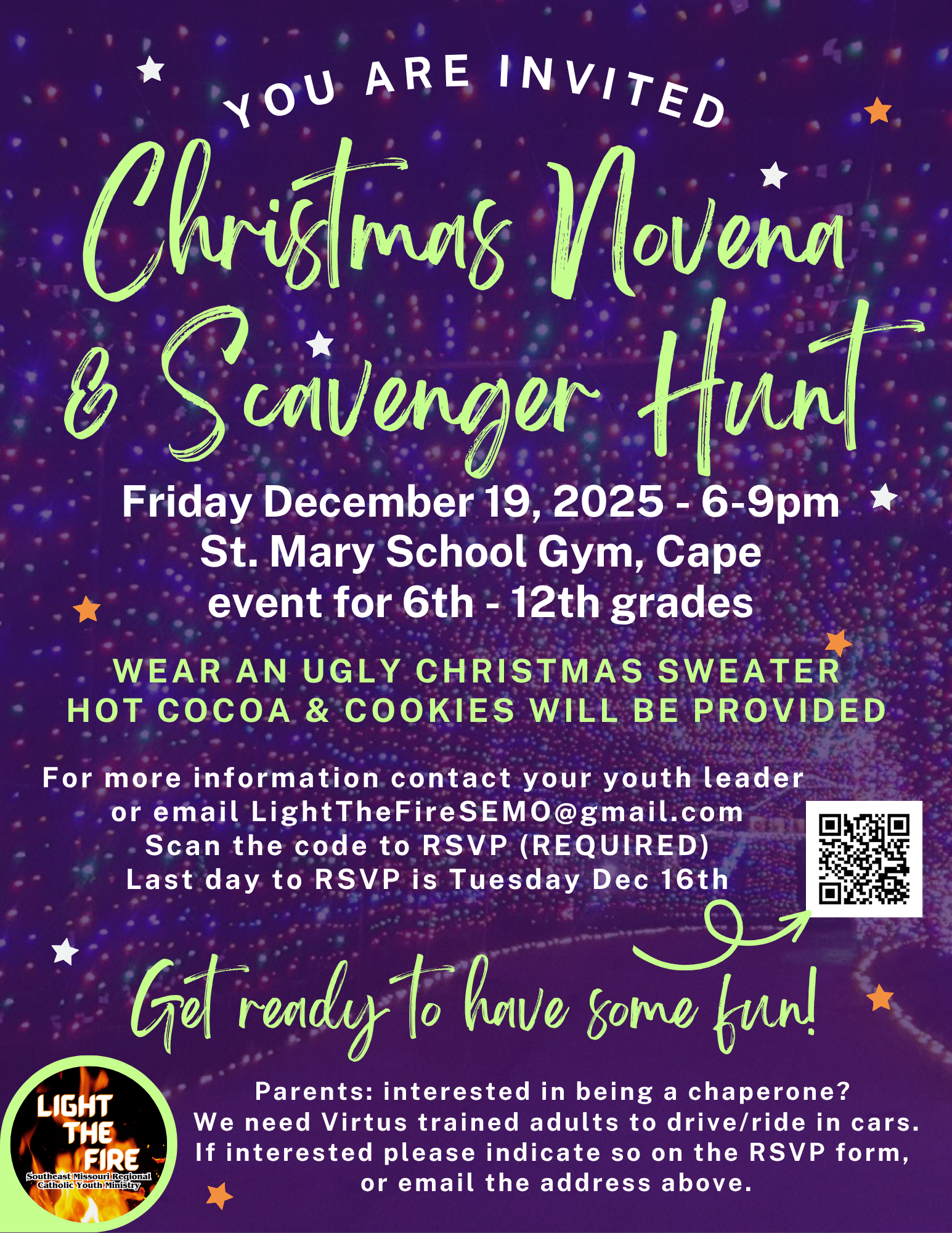 Dec 19 - Christmas Novena & Scavenger Hunt Regional Event (grades 6-12) @ St. Mary