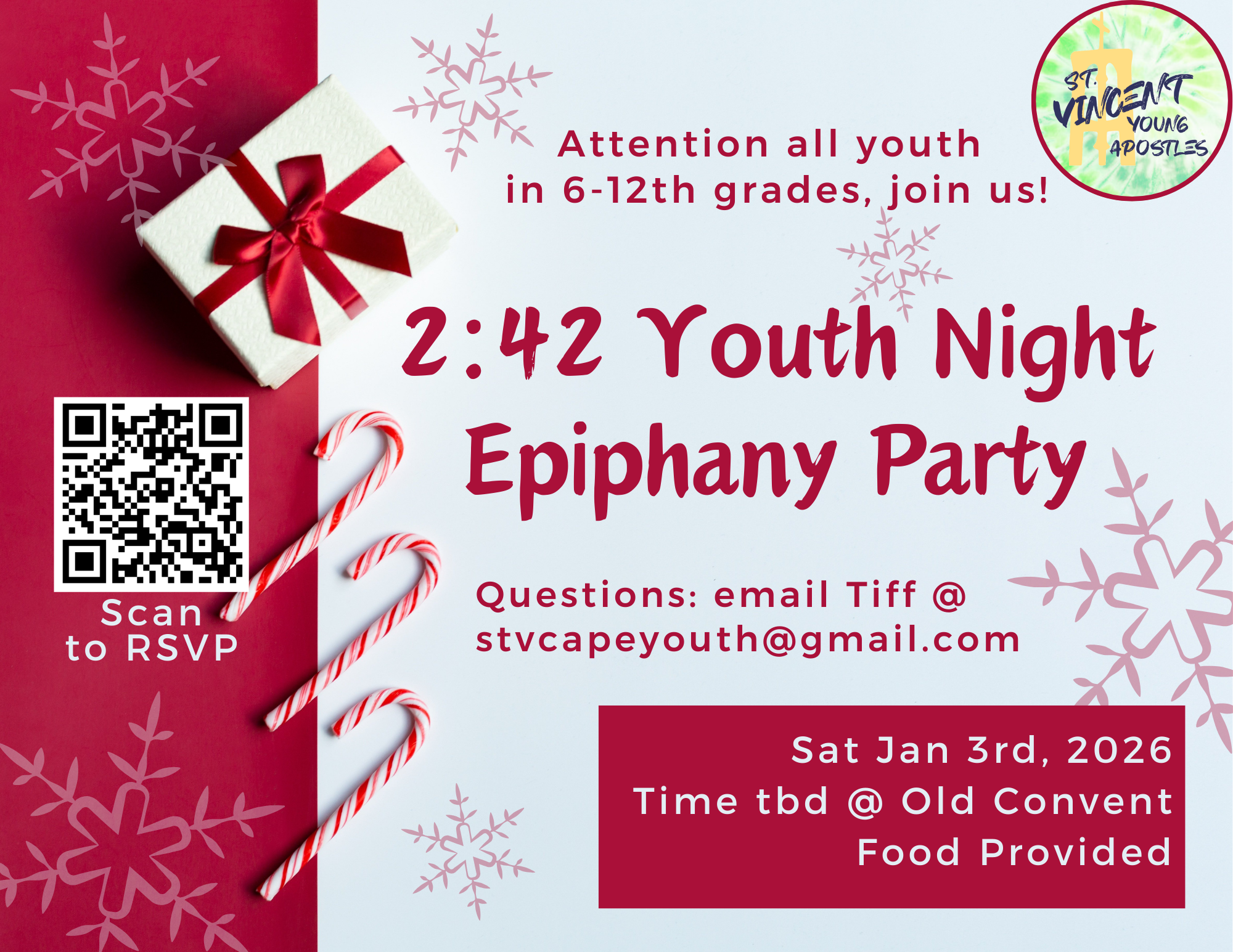 Jan 3 - Epiphany Party (2:42 Youth Night) (grades 6-12) @ the Old Convent
