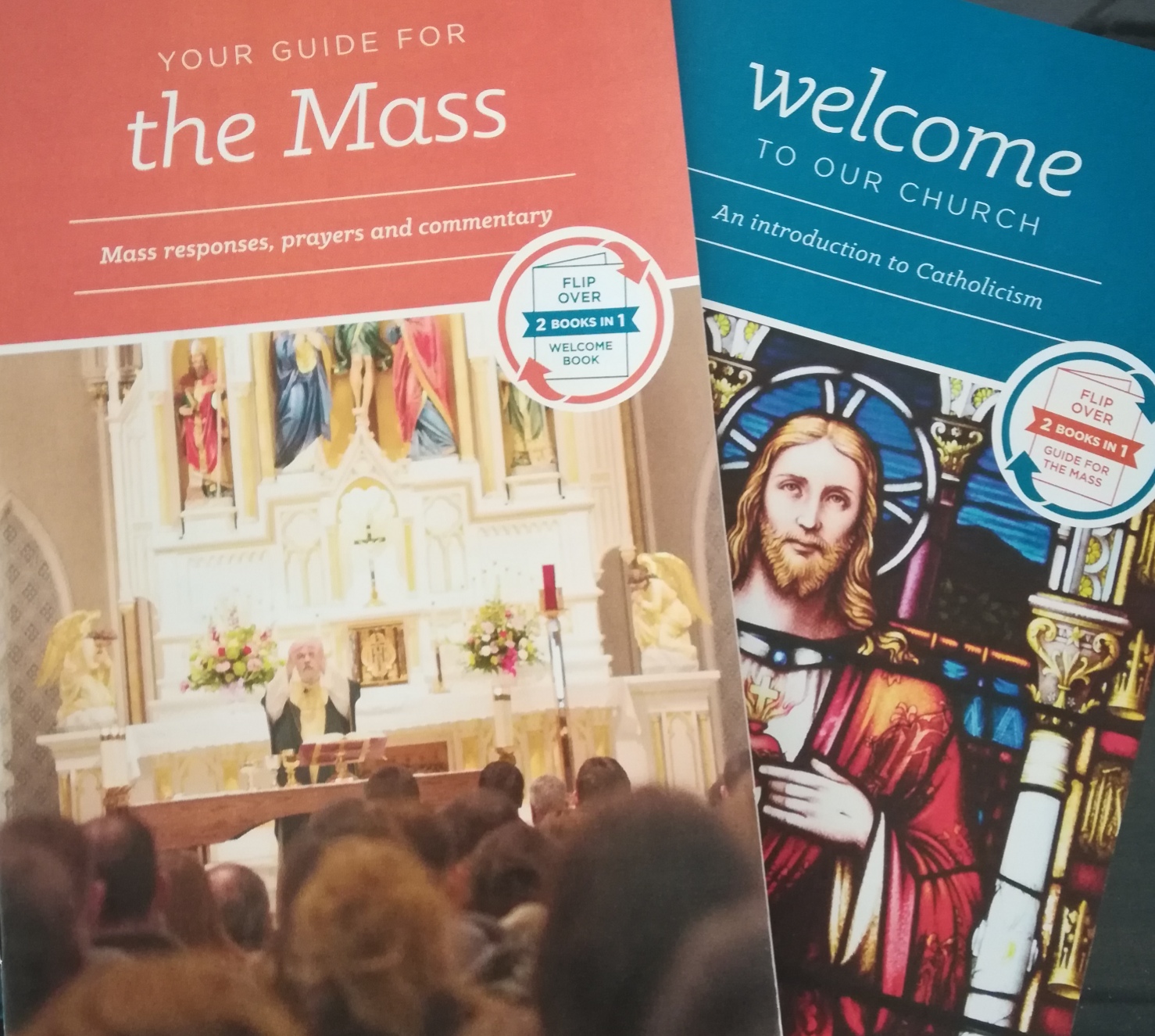 A "Guide to the Mass" and “Introduction to Catholicism” are available at the Help Desk in the Gathering Space.